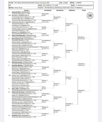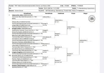 Das gezeigte Niveau verbesserte sich zum Vorjahr, so haben etliche Teilnehmer und Teilnehmerinnen Quantensprünge in der Entwicklung vollzogen. Emma Wunderlich war für den Sportwart des TMV die größte Weiterentwicklung innerhalb des letzten Jahres geglückt, das bestätigten auch viele andere sowie ihre Ergebnisse, so gewann sie auch die Nebenrunde der Damen. Sie ist zu einer kompletteren Spielerin gereift und ihre Entwicklung ist noch längst nicht abgeschlossen. Die erste mögliche Teilnahme und dann gleich mit dem Nebenrundensieg krönte der gerade erst am 01.01.2026 dreizehn Jahre alt gewordene Mika Karl Knobloch mit seinem Team. Unser beim DTB bekanntes TMV Ausnahmetalent zeigte vielen gestandenen Spielern die Grenzen auf.